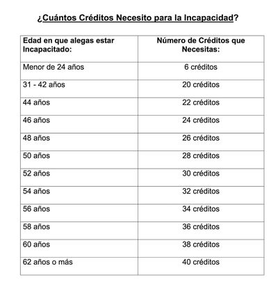 * Estos son solamente estimados, debe corroborar directamente en su estado de cuenta actual para ver exactamente cuántos créditos vigentes tiene. También vea nuestro artículo de: ¿Quién es Elegible para los Beneficios por Incapacidad?